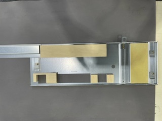 表面はいたってシンプルな化粧鋼板ですが、裏面はこんなに色々な部品が付いているのです。